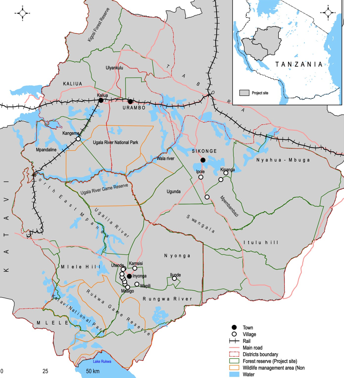 This project focuses on degraded areas of the Miombo woodlands in the south-west of Tanzania. The targeted landscape is covering the following four regions and eleven districts: Tabora Region (Kaliua, Urambo, Sikonge, Uyui District Councils), Katavi Region (Mlele, Tanganyika District Councils), Rukwa Region (Nkasi, Sumbawanga District Councils) and Songwe Region (Mbozi, Momba, Songwe District Councils). Key project activities will be implemented in two sub-landscapes: Tabora (Kaliua District Council) Region landscape, and Katavi Region landscape (Mlele District Council), covering a total area of 1 244 341 ha, and then gradually outscaled to the other sub-landscapes.